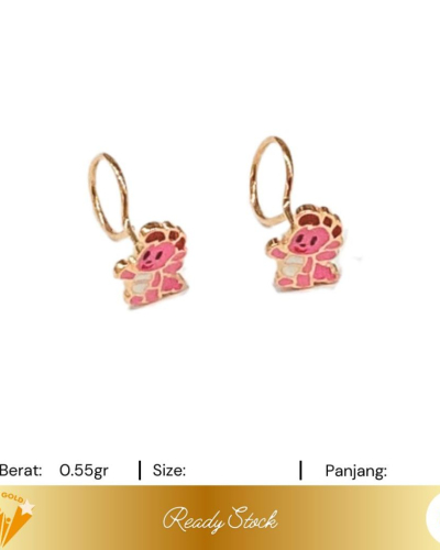Anting Emas Kadar 8K Model Toge Dino Family Gold